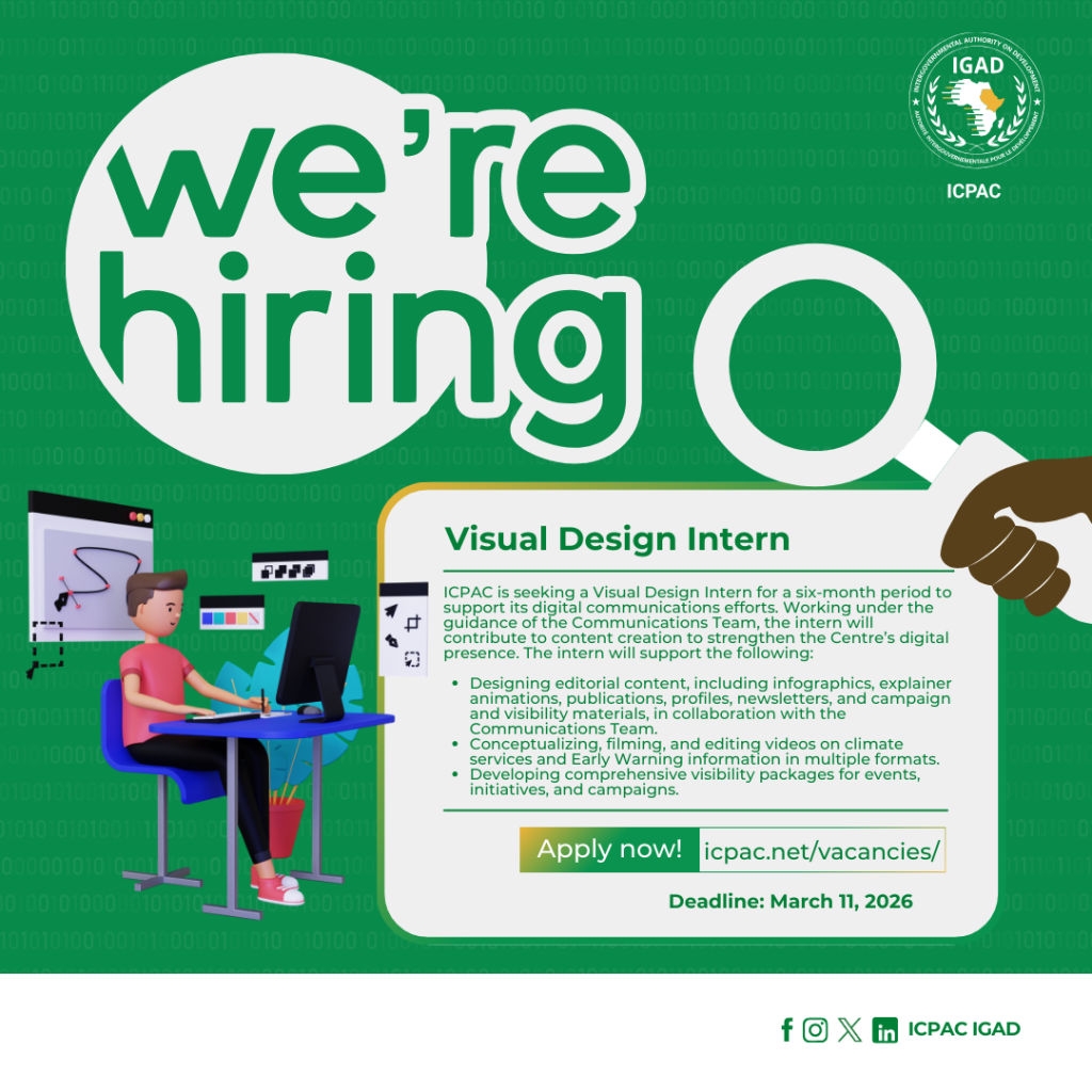 This internship is more than a learning opportunity it’s a chance to shape how climate information drives resilience and preparedness across Eastern Africa. If you believe in the power of visuals to spark change, ICPAC wants to hear from you.